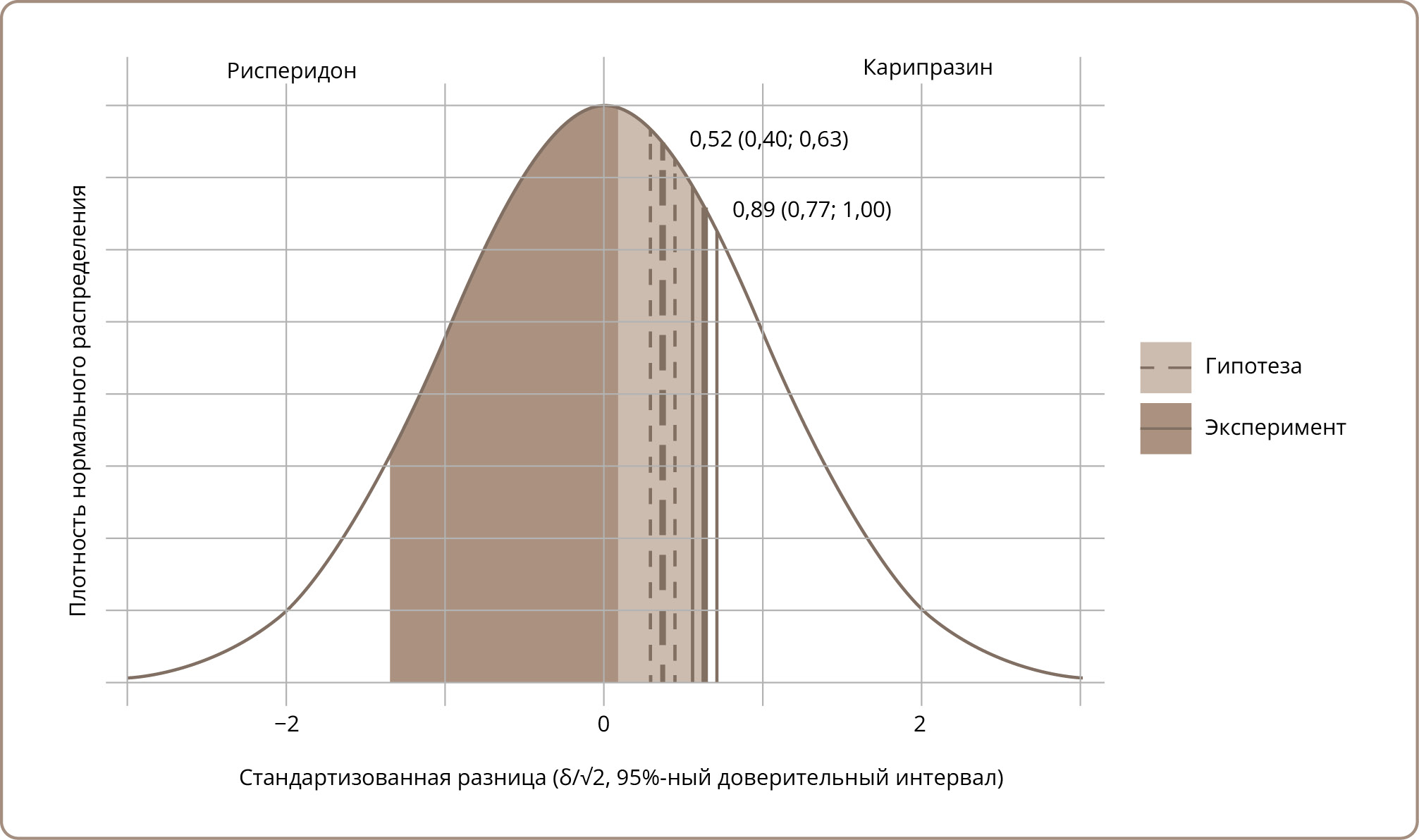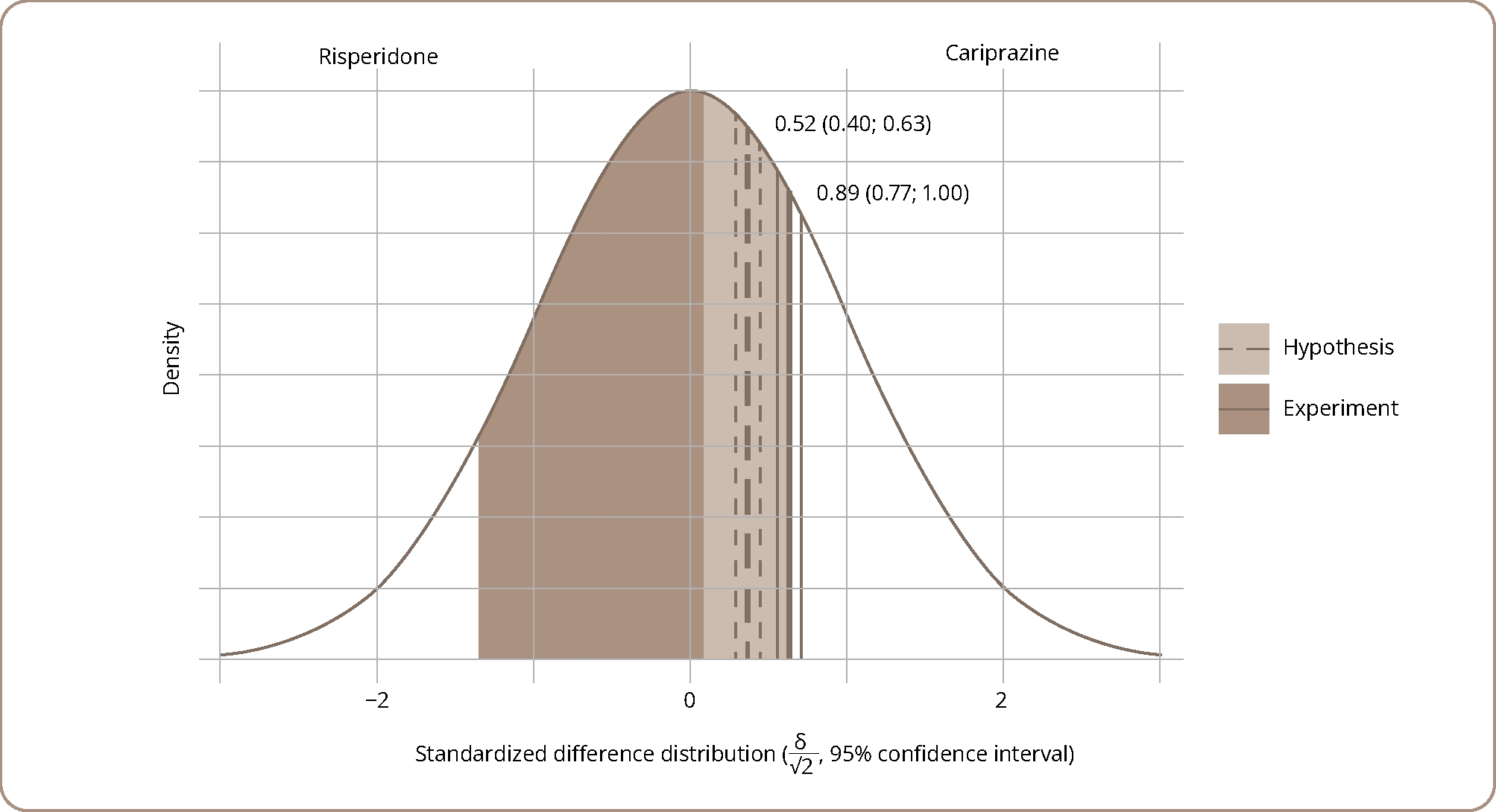 For depressive symptoms, the situation is probably similar. The expected difference between cariprazine and risperidone in terms of their effect on depressive symptoms is insignificant (0.14 [-0.15; 0.43]) [8], although in practice this effect is perceived as strong. The result can be explained by the fact that the overall score is the result of a number of factors. For example, it is difficult to distinguish between negative symptoms and symptoms of depression [44, 45]; so, it cannot be excluded that the antidepressant effect reflected in the physicians’ experience might be due to a change in the severity of the negative symptoms. It should be noted that the original data relate only to depressive symptoms within a psychotic episode, whereas depression in schizophrenia is a more complex condition [46].