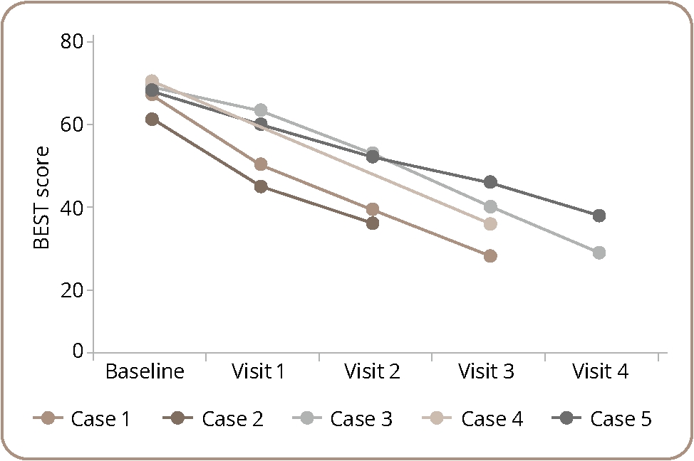 Figure 1. Improvement in BEST score for the individual patients after the introduction of endoxifen treatment