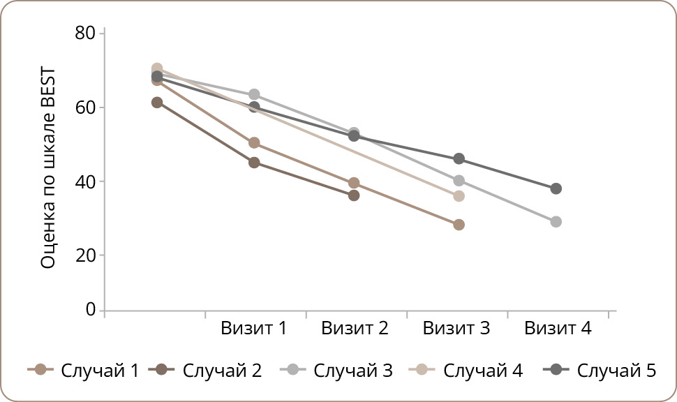 BEST score at baseline | 67 | 61 | 69 | 70 | 68 |
