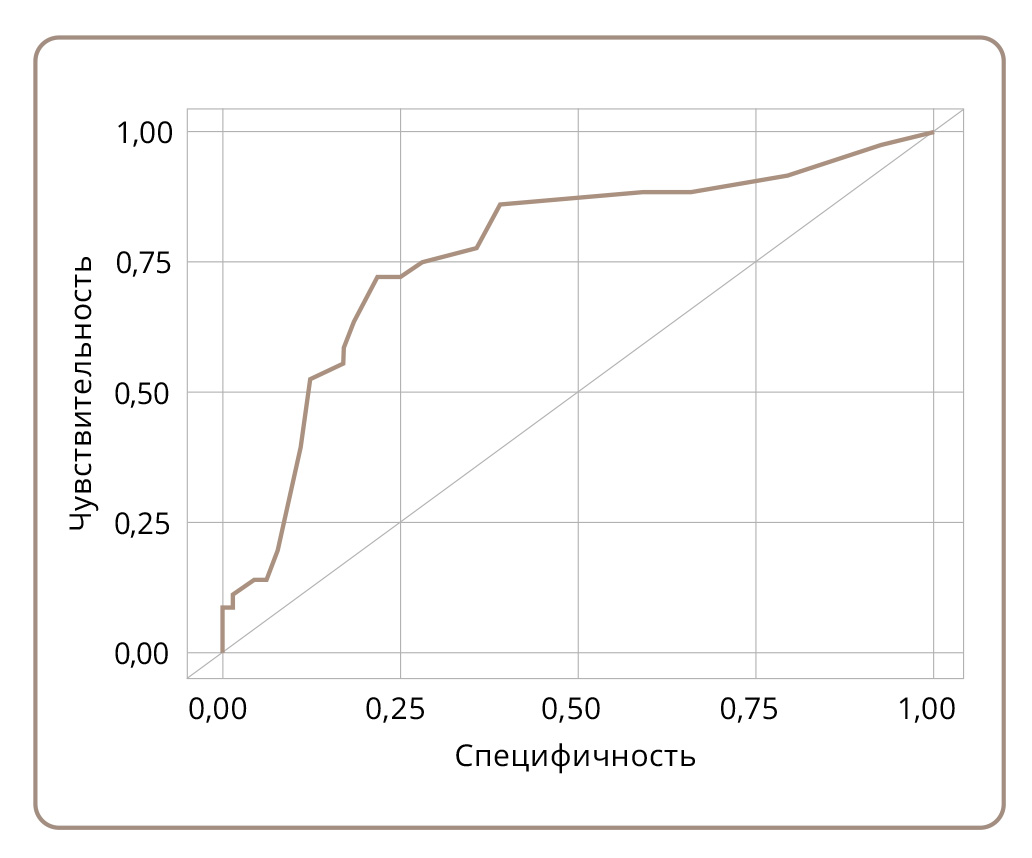 The study data were encoded, organized into tables, and analyzed statistically using the StatTech software, version 3.1.10. Quantitative variables were tested for distribution normality using the Shapiro–Wilk test. If the data were normally distributed, they were described by the mean (M) and standard deviations (SD), as well as the limits of the 95% confidence interval (95% CI). Non-normally distributed quantitative data were represented by the median (Me) and the lower and upper quartiles (Q1–Q3). Categorical data were expressed in absolute values and percentages. Comparison of two groups in terms of a quantitative parameter with normal distribution and equal variance was performed using the Student’s t-test. For data with non-standard distribution, the Mann–Whitney U-test was used. Univariate analysis of variance was used to compare three or more groups with normal distribution, and the Kruskal–Wallis test was used for data with non-standard distribution. Comparison of two groups in terms of a binary attribute was performed by calculating the odds ratio. Percentages were compared using Pearson’s chi-square test and Fisher’s exact test when analyzing four-way contingency tables. The relationship between a binary dependent variable and one or more independent variables was assessed by multivariate logistic regression. The correlation was assessed using the Spearman’s rank correlation coefficient. The linear regression method was used to develop a prognostic model, and the diagnostic significance of quantitative attributes was analyzed using the ROC curve method. The ROC curve was plotted by comparing the sensitivity and specificity of the test at different cut-off points. The Youden index was used to select the optimal point on the ROC curve. Significance levels (p-values) were considered as follows: p<0.05 were significant, p<0.01 were highly significant, and p≥0.05 were non-significant.