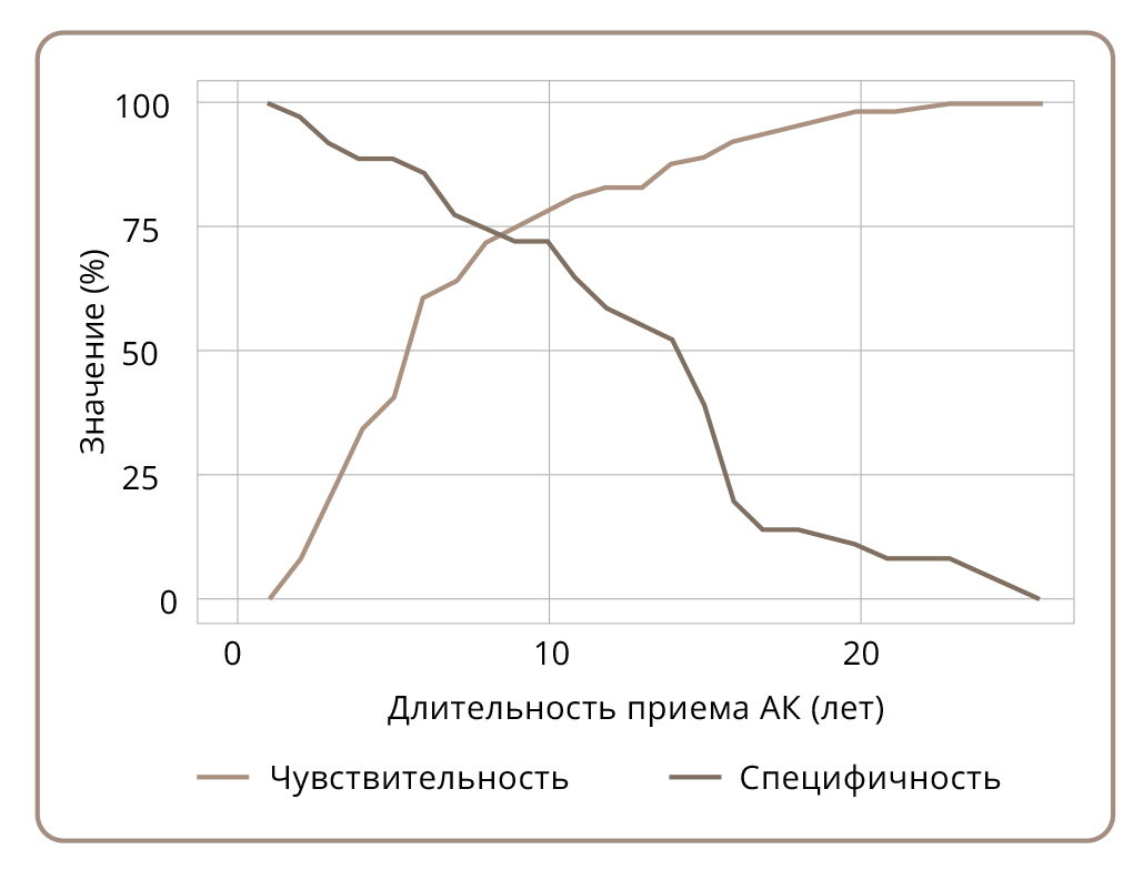 Table 6. Threshold values of the duration of anticonvulsant therapy and the probability of fracture according to the ROC model, taking into account the sensitivity and specificity