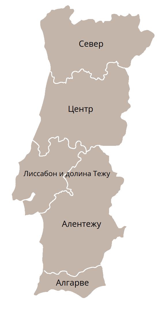 Portugal is a European country, situated in the south-west of the Iberian Peninsula, with a population of around 10 million. It is composed of 18 districts and two autonomous regions, corresponding to the archipelagos of Madeira and the Azores. From an organizational point of view, the continental part of the country is divided into five health regions, administered by the regional health administrations (Figure 1), responsible for granting access to health care, while assuring the compliance of health policies and programmes as well as executing health care policies, coordinating planning measures and supporting and evaluating public health institutions in their areas of intervention [21][22][23].