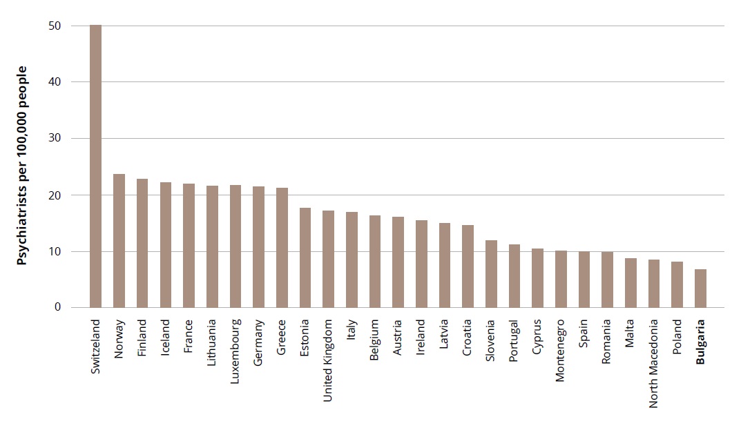 Compared with other countries in the European region, Bulgaria has an extremely diminished pool of human resources active in psychiatric practice (Figure 3).